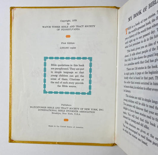 My Book Of Bible Stories Watch Tower Tract Society 1st Ed Vintage 1978 HARDCOVER
